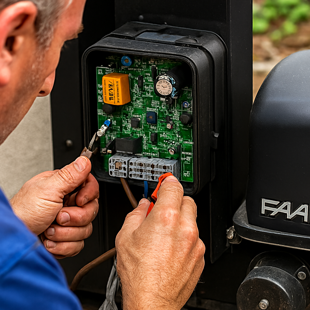 - بازگشت خودکار درب: تحریک ایمنی چشمی، زاویه نصب نادرست، یا اختلال منطق ایمنی برد.